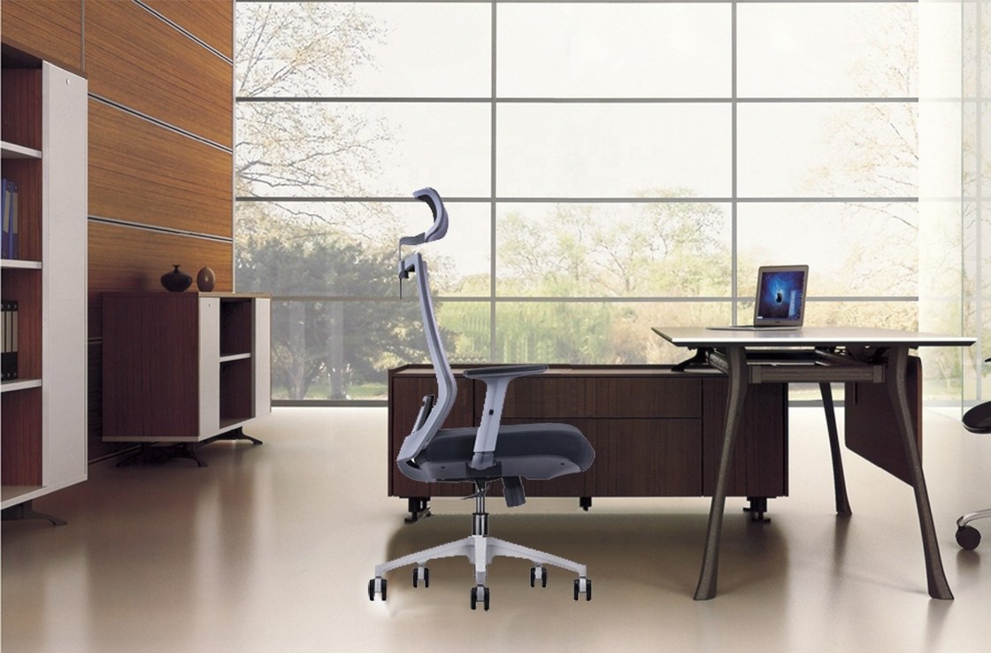 ROZMIAR KRZESŁA: 580*630*1120-1128mm | Zagłówek + oparcie: Szary materiał PA+GF, tył ze srebrnym paskiem dekoracyjnym, z talią, talia wykonana z materiału akrylowego | |